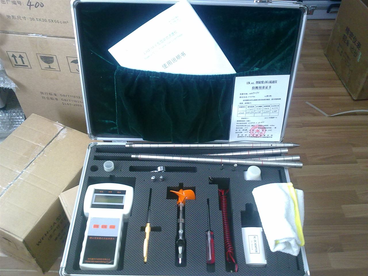 明渠测流使用CG16-1型测杆,直径为ф16mm,长度1.6m(可卸为四节);管道  测流使用内撑式测杆。