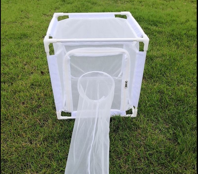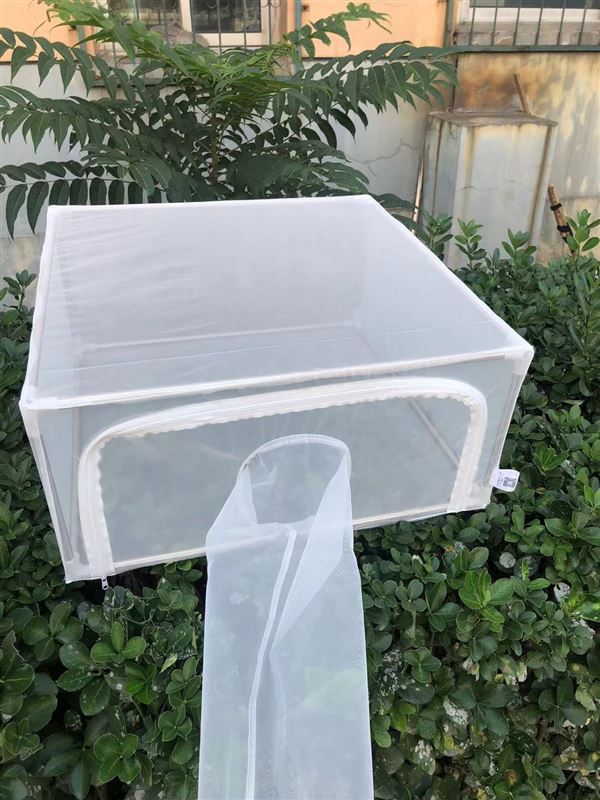 高强度玻璃纤维杆边,单根0.5米,套管拼接,底面1*1米,高度0.5米,三通拼接,底面纱罩漏空,配袖笼,纱网眼120目。